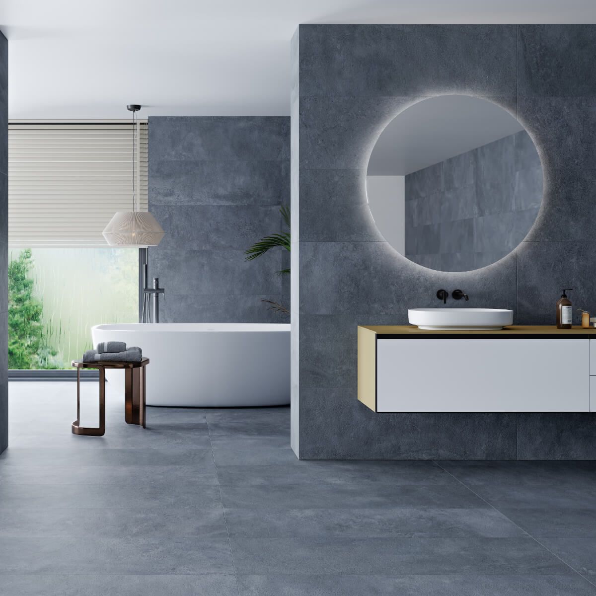 - Kolor: Meridean Blue – nowoczesny, chłodny odcień niebieskiego z nutami szarości, inspirowany naturalnym kamieniem.