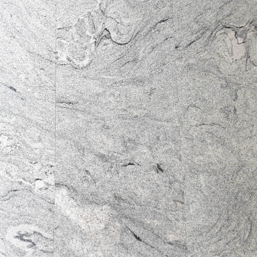 Granit Viscon White to naturalny kamień pochodzący z Indii, znany z wyjątkowej odporności i charakterystycznego wyglądu. Jego biało-szaro-czarne, falujące wzory przypominają naturalne pejzaże – każdy element jest unikalny. Wykończenie typu leather (szczotkowane) nadaje powierzchni delikatnie chropowatą, matową fakturę, która podkreśla głębię koloru, a jednocześnie jest przyjemna w dotyku i mniej podatna na zarysowania niż klasyczny poler.